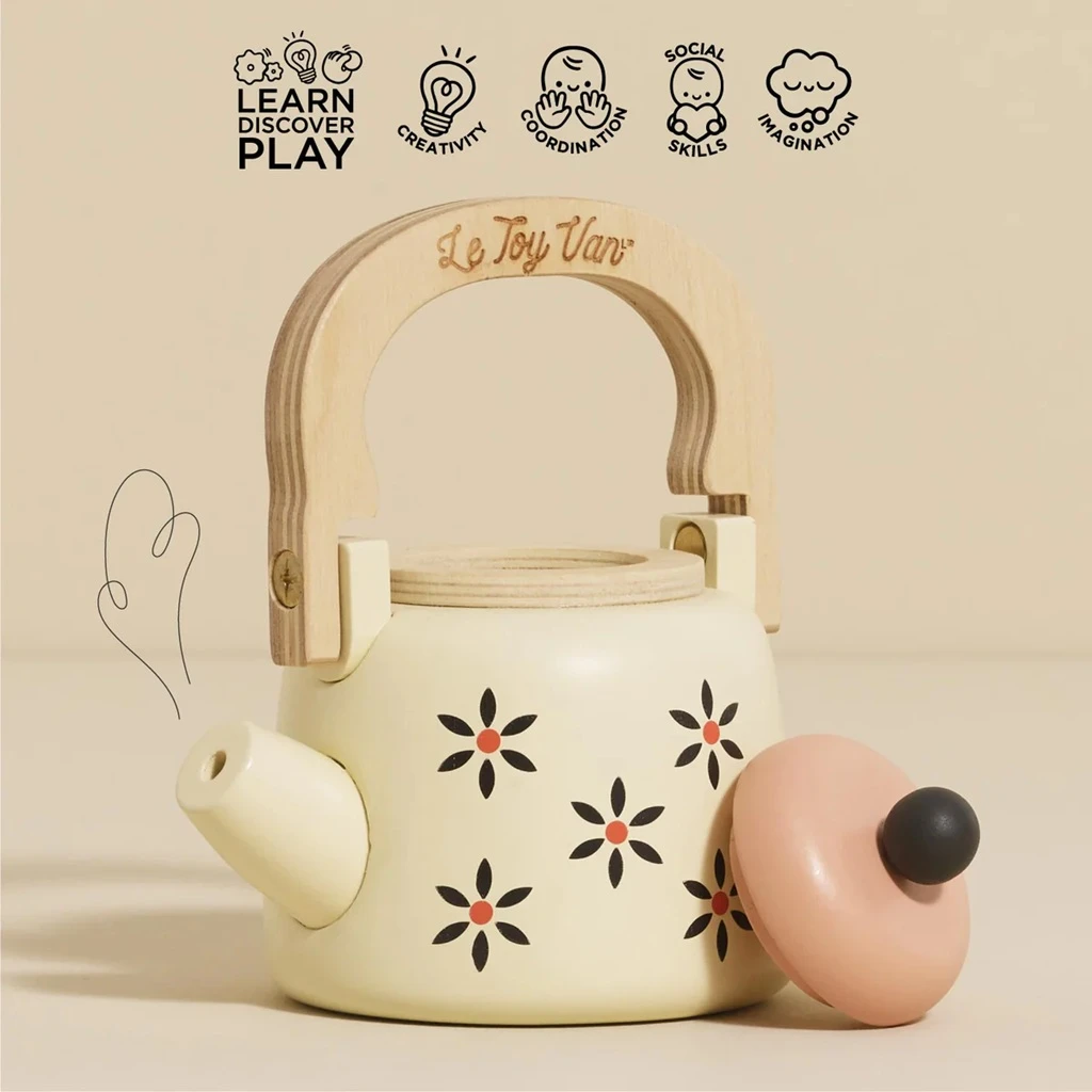 Díky odnímatelnému víčku a praktické nalévací rukojeti s gravírovanými detaily si děti mohou hrát na přípravu čaje, kouzelných lektvarů nebo pohostit své panenky a plyšáky. Hra podporuje fantazii, jemnou motoriku i společenskou hru.