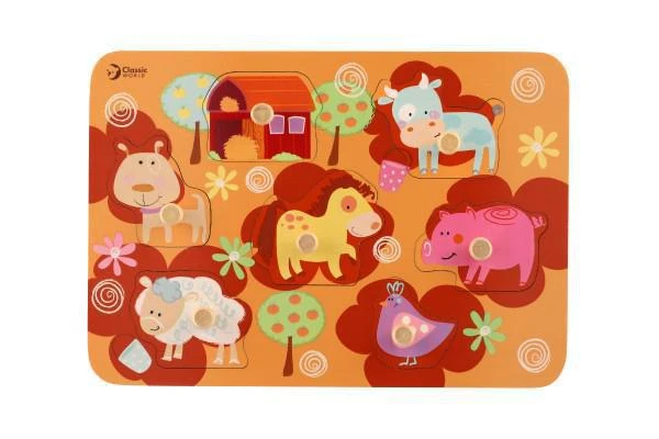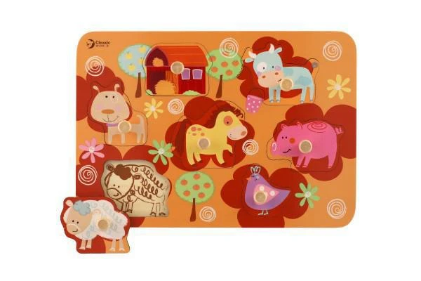 Vkládačka deskové obrysové puzzle farma dřevo 18m+