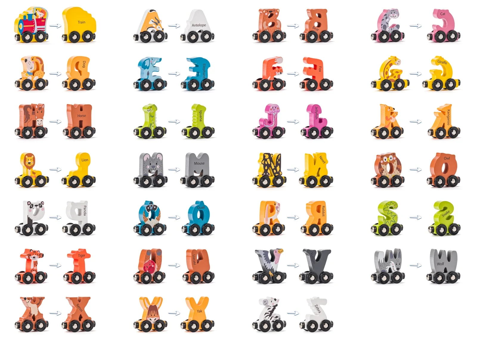 Vláček s abecedou - Zvířátka s AJ, 27 dílů