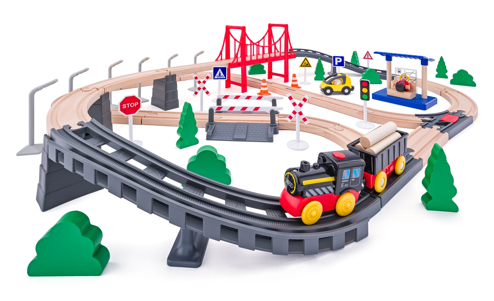 Vláčkodráha s elektrickou mašinkou a mostem, 80 dílů