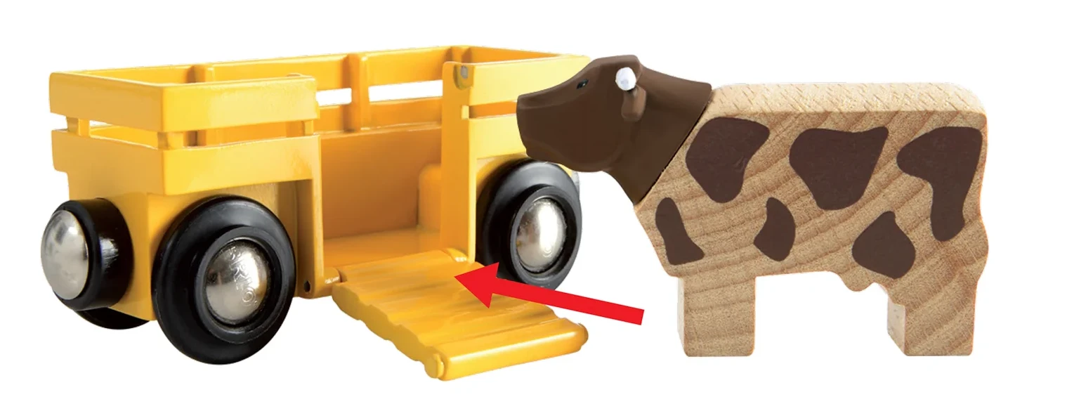 Malí strojvedoucí mohou přepravovat kravičky přes most, projíždět kopcovitou krajinou a objevovat život na venkově. Sada obsahuje most, stromy, skály, figurku farmáře a dvě kravičky, které se mohou svézt ve speciálních vagónech pro dobytek.