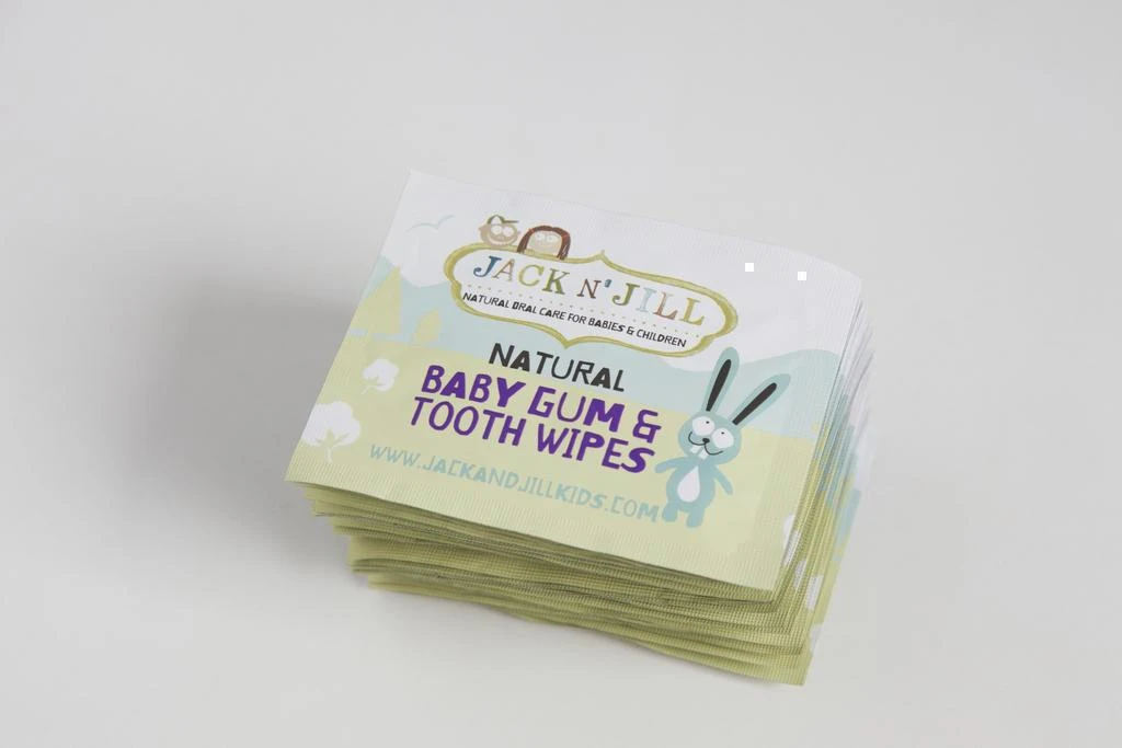 Jemná textura pro efektivní čištění a kontrolu povlaku. Mají neutrální chuť s obsahem xylitolu, bez fluoridů, bez cukru, bez parabenů a bez konzervantů. Naše ubrousky jsou sterilizovány párou a každý ubrousek je jednotlivě zabalen pro zabezpečení optimální hygieny. Tyto ubrousky jsou jednoduchou cestou k tomu, abyste si byli jisti, že zuby a dásně vašeho děťátka jsou zdravé zcela od začátku.