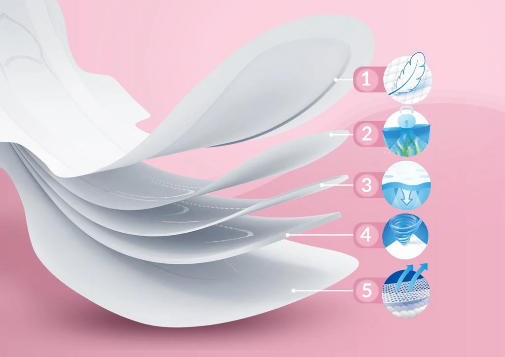 - 4 křidélka: Čtyři křidélka jsou dalším bezpečnostním prvkem, který udržuje vložku na místě bez ohledu na to, co děláte. Ať už chodíte, ležíte, sedíte, vložka zůstává stabilní a bezpečně na svém místě.