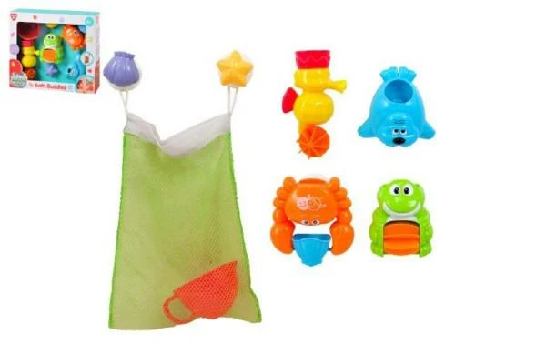 Vodní mlýnek do vani zvířátka s praktickou síťkou na hračky.