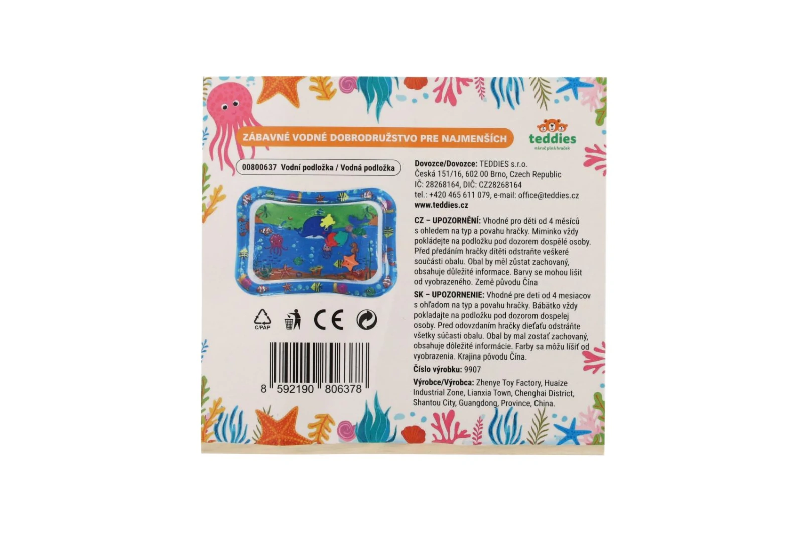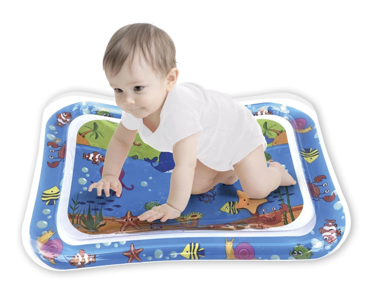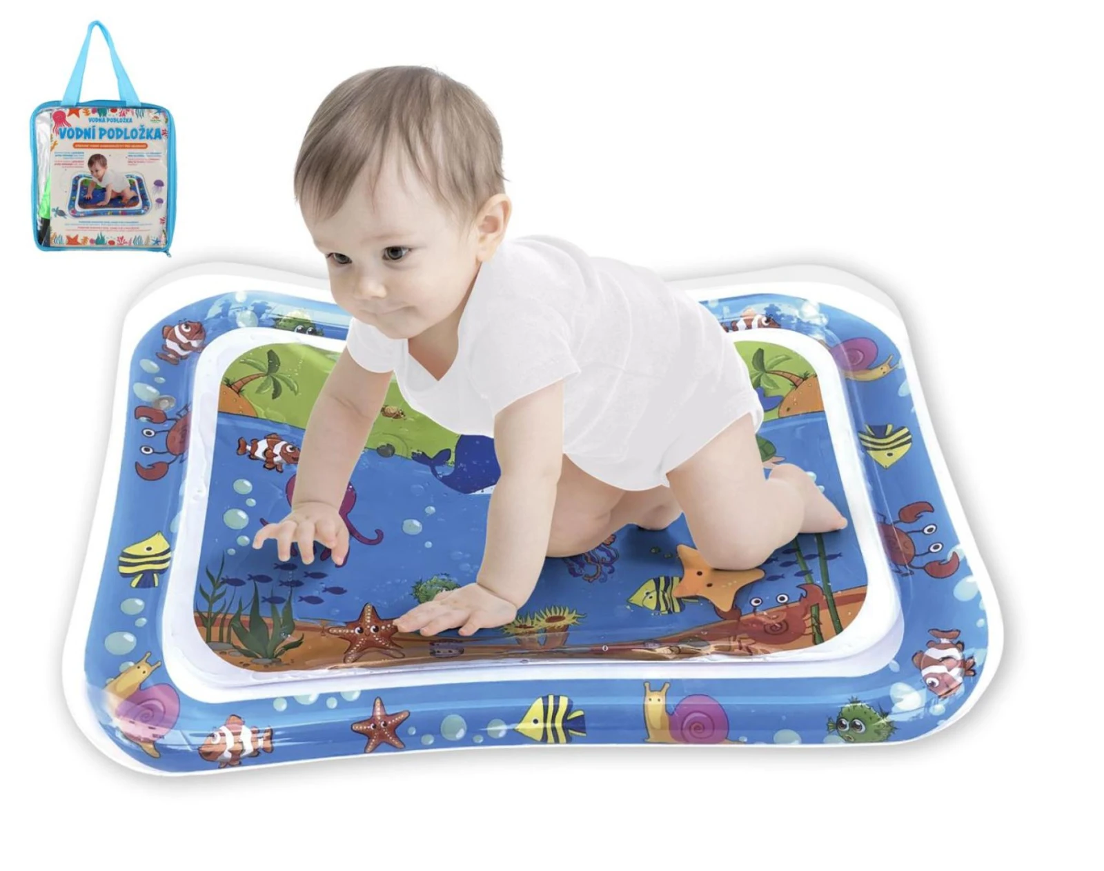 Podložka se snadno nafukuje a plní vodou, díky čemuž vytváří efekt pohyblivých obrázků uvnitř, které upoutají dětskou pozornost a motivují k pohybu.