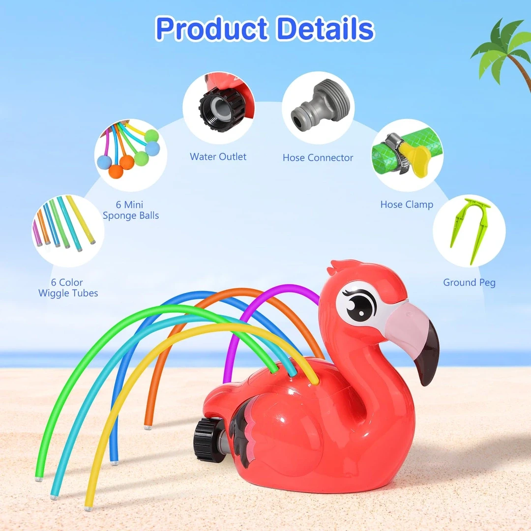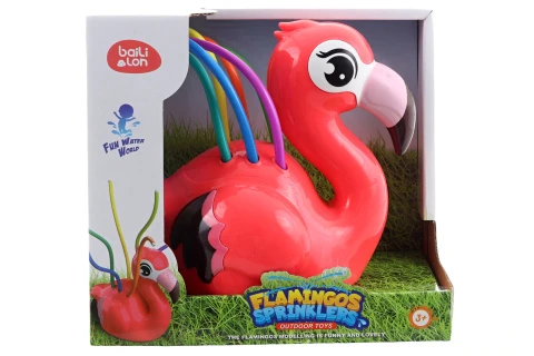 Rozstřikovací plameňák. Napojení na zahradní hadici. Materiál plast. Baleno v otevřené krabici. Rozměry balení cca 22x20x13 cm. Věk 3+