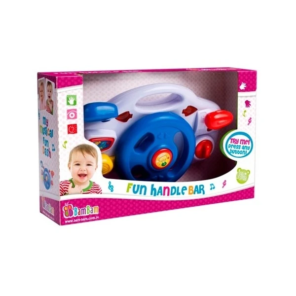 Parádní volant, který si oblíbí každý malý kluk, který chce umět řídit jako tatínek. Při otáčení volantu, vydává volant rachotivý zvuk. Po zmačknutí klaksonu na volantu začne troubit, součástí volantu je i blinkr, který vydává zvuky jako opravdový (chová se stejně, při otočení dolů - svítí šipkou doleva, při otočení nahoru, ukazuje šipku doprava). Při otočení klíčkem, se rozezní startování auta. Volant taktéž obsahuje tlačítko s hudbou a praktické zpětné zrcátko.