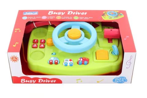Plastový volant zvukový s mnoha funkcemi. Volant vydává zvuky a svítí, součástí je také telefon. Rozměry volantu cca 26 x 20 cm.