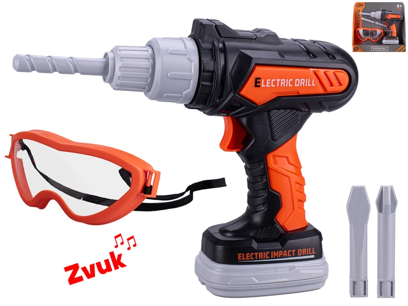 Vrtačka příklepová na baterie se zvukem + brýle a 2 vrtáky