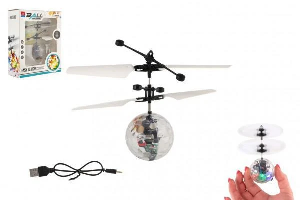 Vrtulníková koule létající svítící reagující na pohyb ruky s USB průhledná
