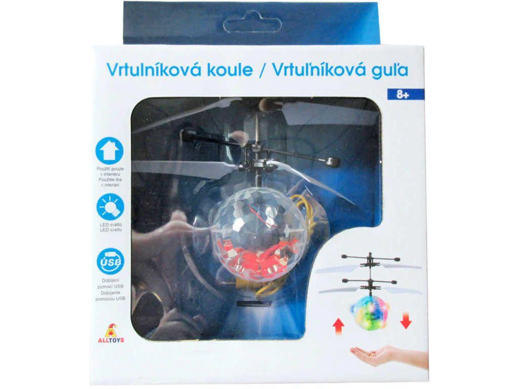 začnou točit, vlož ruku pod kouli a vrtulník se vznáší podle pohybu