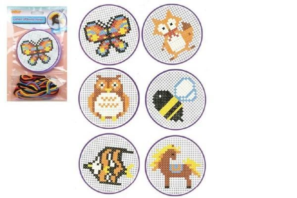 Balení obsahuje: 1x plastová destička, 1x papírová předloha, 1x jehla, různobarevné bavlnky.