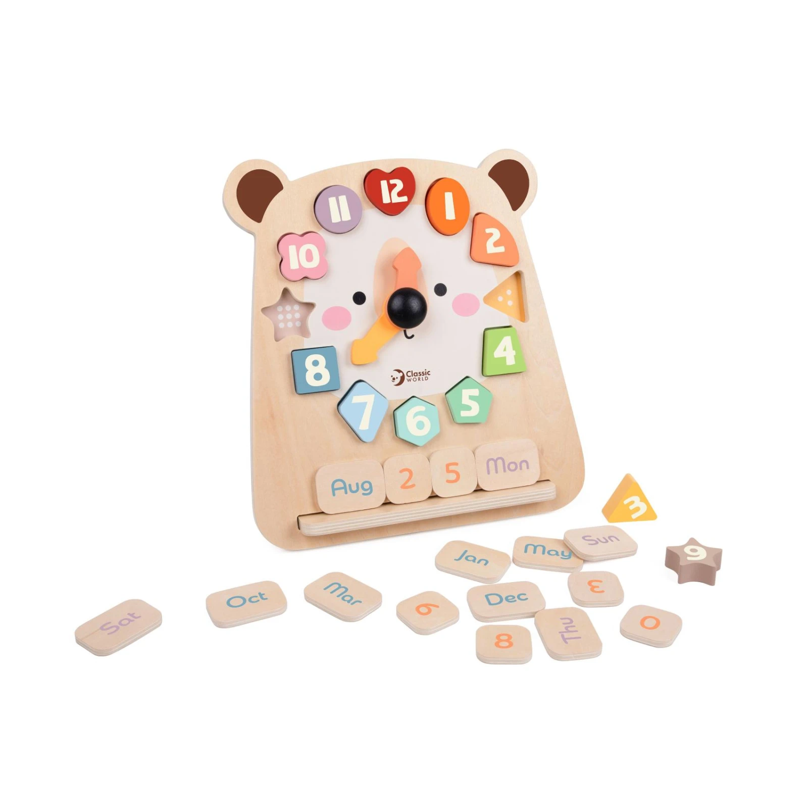 Výukové hodiny medvěd - vkládačka dřevěné 26x29x5 cm