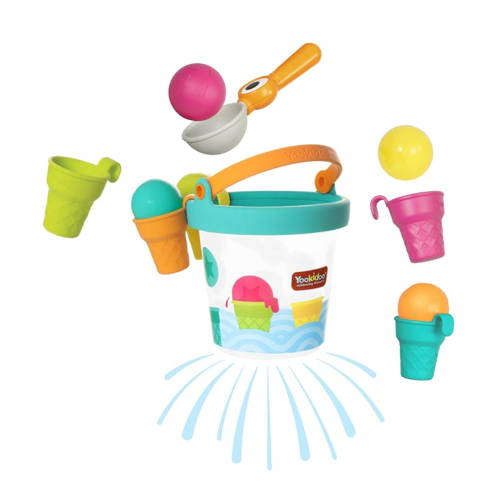 Úspěšné nabírání a vkládání zmrzliny do kornoutů dává vašemu dítěti pocit uspokojení. Zvednutí kbelíku a sledování stříkající vody je zábavným překvapením, které posiluje sebevědomí a povzbuzuje dítě k většímu prozkoumávání.