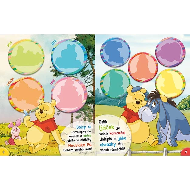 Díky 4 stranám samolepek si mohou děti obrázky dotvářet podle vlastní fantazie a procvičovat jemnou motoriku, koordinaci oko–ruka i první logické úkoly. Knížka je lehká, skladná a ideální na doma i na cesty.