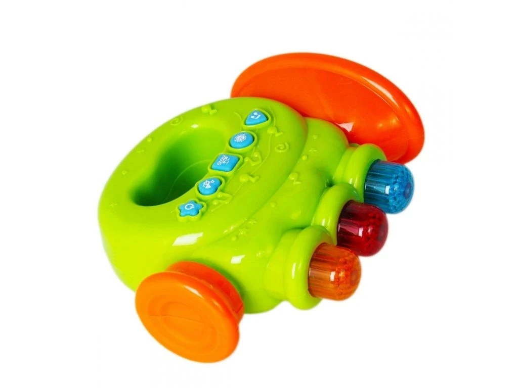 Tato hudební hračka je určena pro děti od 18 měsíců a nabízí pestrou škálu zvuků, které podporují sluchové vnímání i zvědavost malých dětí. Hračka napodobuje šum moře, zvuk trumpety, bubínku a další melodie, díky čemuž vytváří hravé a dynamické prostředí pro objevování. Děti si mohou zvuky zkoušet podle vlastní chuti a učí se vnímat rozdíly mezi jednotlivými tóny i melodiemi.