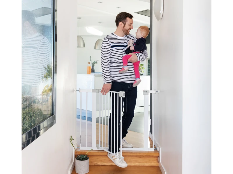 Safety 1st Auto Close je kovová zábrana s automatickým zavíráním, kterou je možné otevírat oběma směry. Dvojitý zajišťovací mechanismus zvyšuje bezpečnost. Díky vizuálnímu indikátoru Secure Tech® budete mít jistotu, že je zábrana správně zavřena. Jednoduchá instalace bez vrtání.