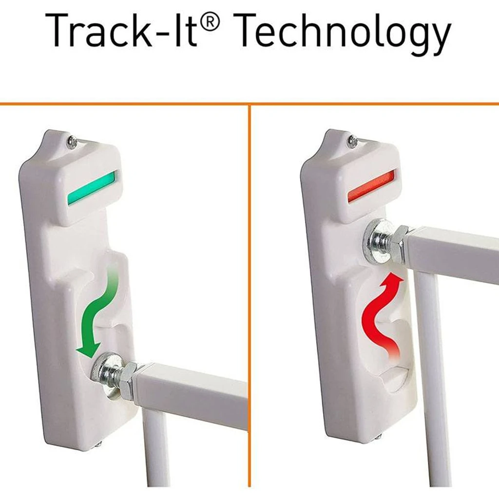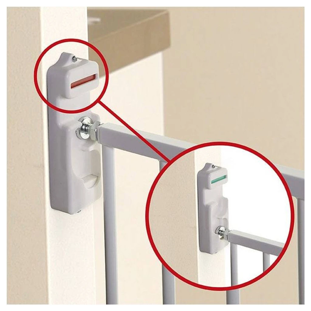 Díky inovativnímu zámku puzzle a ovládání jednou rukou jednoduše zvedněte bránu a sledujte ji skrz cestu puzzle, abyste ji odemkli. Tato brána namontovaná na hardware se vejde do otvorů mezi 76-134,5 cm, je 76 cm vysoká a brána se bude otevírat v obou směrech pro snadný průchod bez nebezpečí zakopnutí. Pomocí otočného nebo odnímatelného jazýčku lze bránu omezit na otáčení pouze jedním směrem, takže je ideální pro použití na vrcholu schodiště. Jedinečný indikátor EZY-Check Indicator vám pomáhá zajistit klid tím, že jasně ukazuje, zda je brána zamčená nebo odemčená. Při odemknutí bude indikátor stavu svítit červeně a při správném uzamčení a zajištění zezelená. Brány Dreambaby dodají vašemu domu zabezpečenému před dětmi styl i bezpečnost.