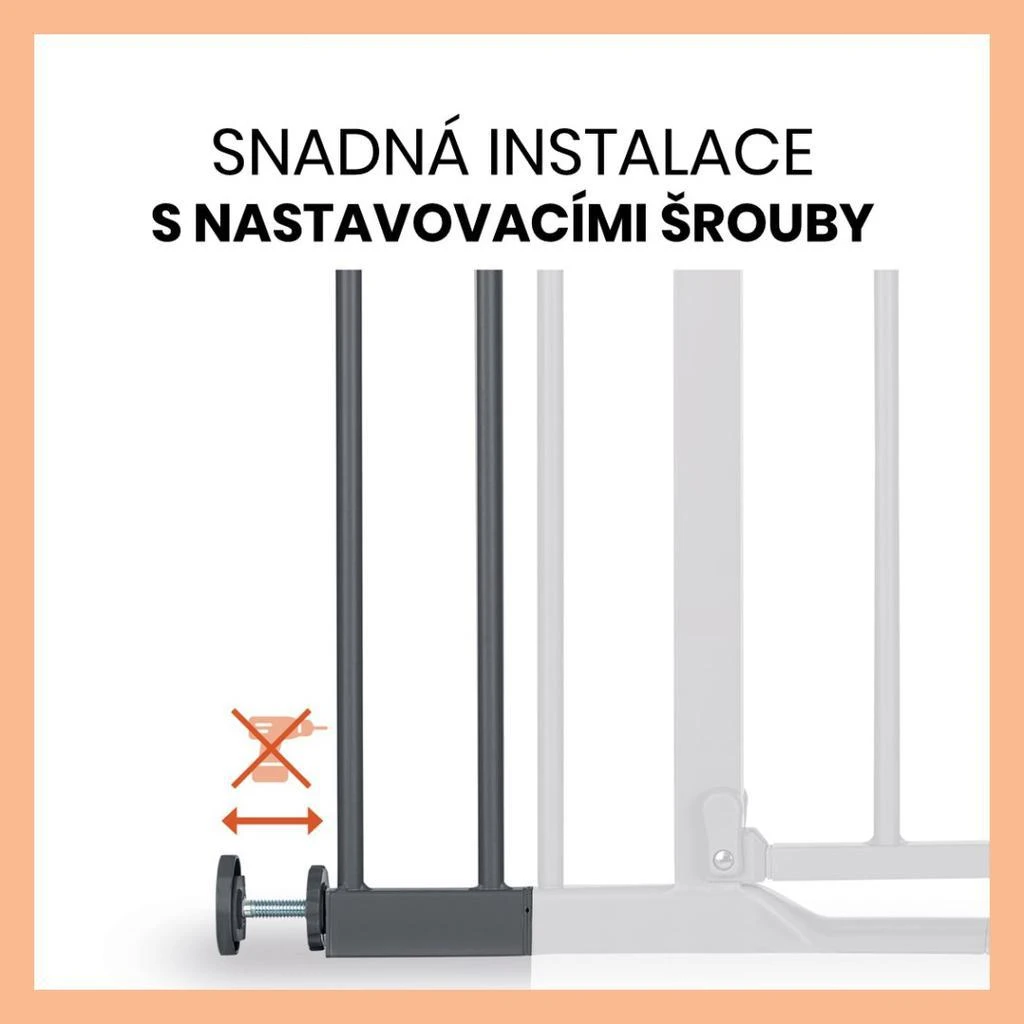 STABILNÍ a bezpečná instalace bez VRTÁNÍ // PRODLOUŽENÍ se jednoduše připevní k zábraně pomocí dvou spojovacích prvků, poté se pomocí polohovacích šroubů z venkovní strany bezpečně upevní do rámu dveří / nebo proti zdi či schodišti.