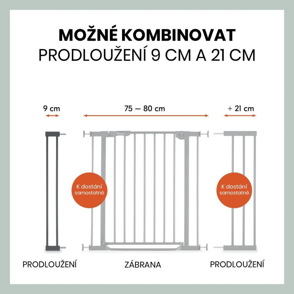 FLEXIBILNÍ použití díky KOMBINOVATELNOSTI // Jedno prodloužení nestačí? Jednoduše přidejte ke své zábraně dvě prodloužení, každou z jedné strany. Kombinovat lze i dvě různé velikosti zábran (9 cm + 21 cm).