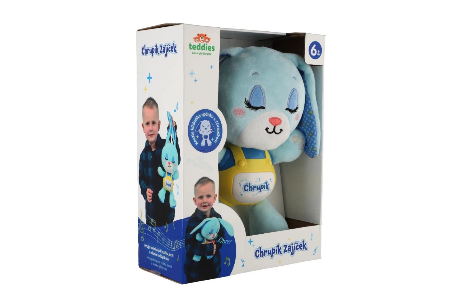 Rozměry balení jsou 22 × 30 × 11 cm a hračka je vhodná pro děti od šesti měsíců věku. Chrupík je nejen roztomilý plyšový kamarád, ale také jemný pomocník pro klidný spánek a pohodu vašich nejmenších.