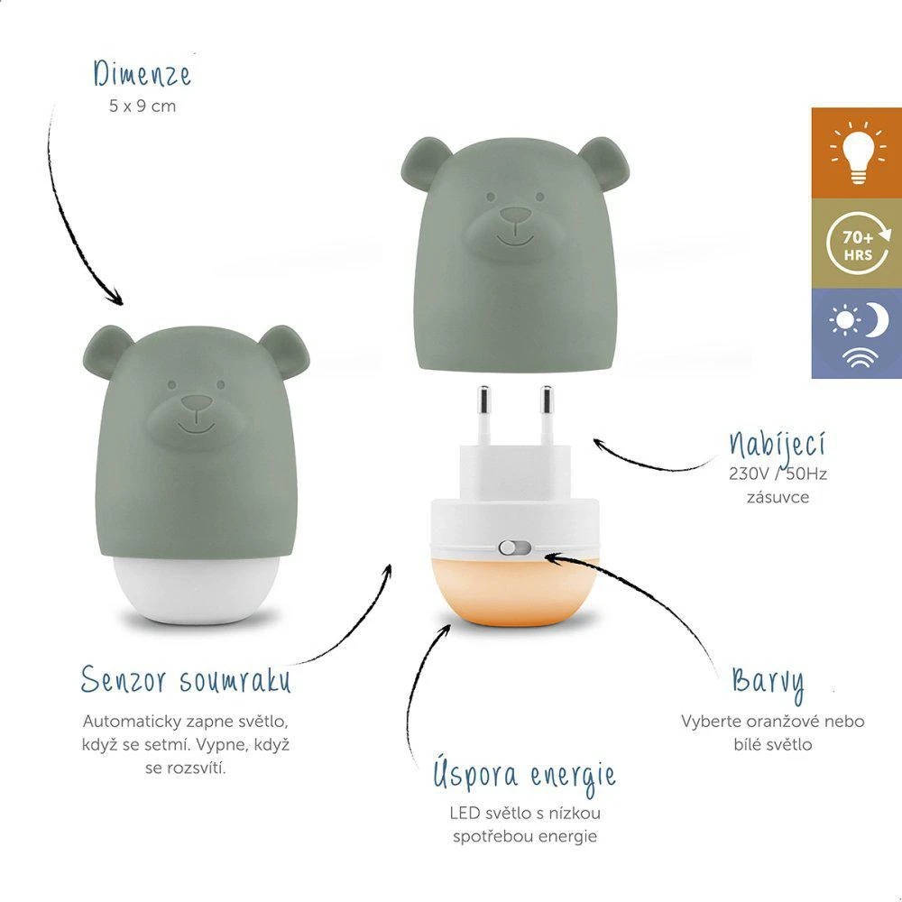 Medvídek BENNY je přenosné dobíjecí dětské noční světlo, které se automaticky zapne, když se setmí, a vypne, když se rozední.