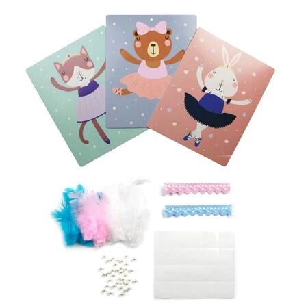 Obsahuje: 3 obrázky se zvířátky k ozdobení, peříčka, stuhy a návod.