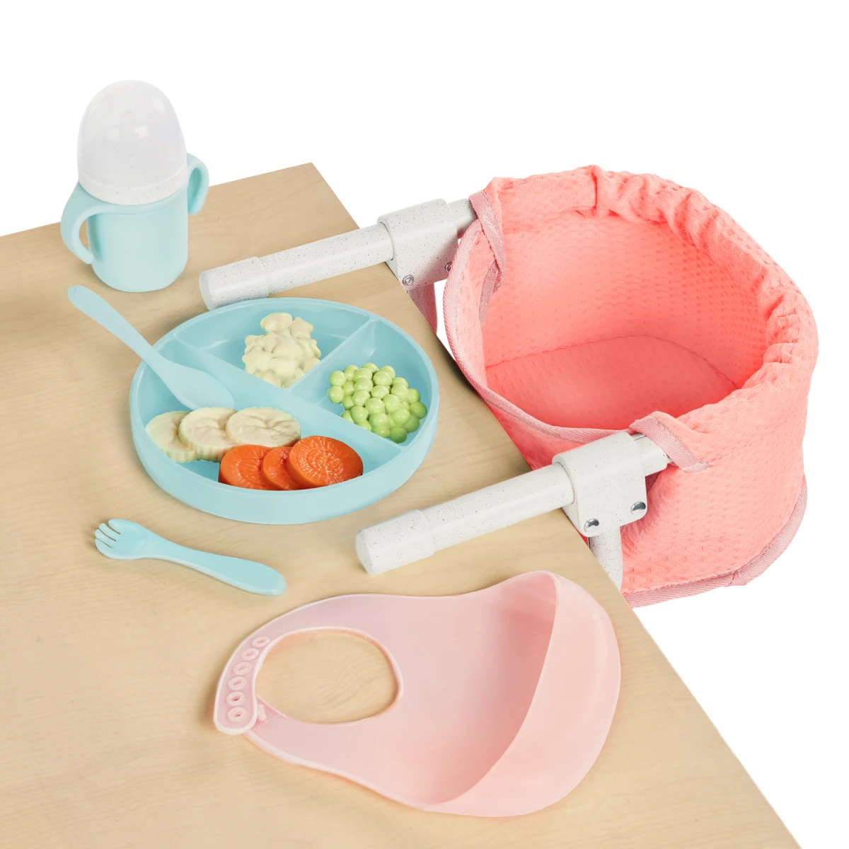 Dopřejte panence vašeho dítěte místo u stolu s praktickou jídelní židličkou LullaBaby, kterou snadno připevníte k desce stolu!
