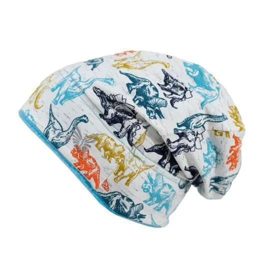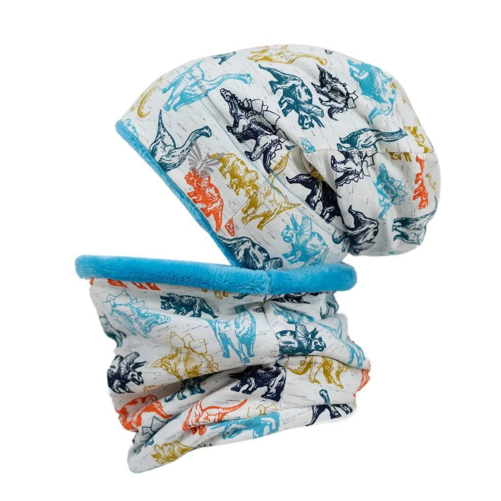 Zimní čepice spadená Dinouši tyrkysová Esito