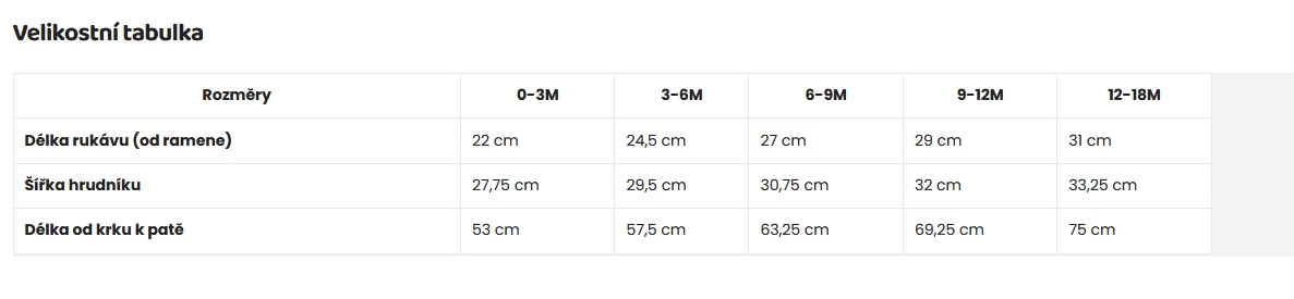 | Velikost | 56 / 62 / 68 / 74 / 80 |