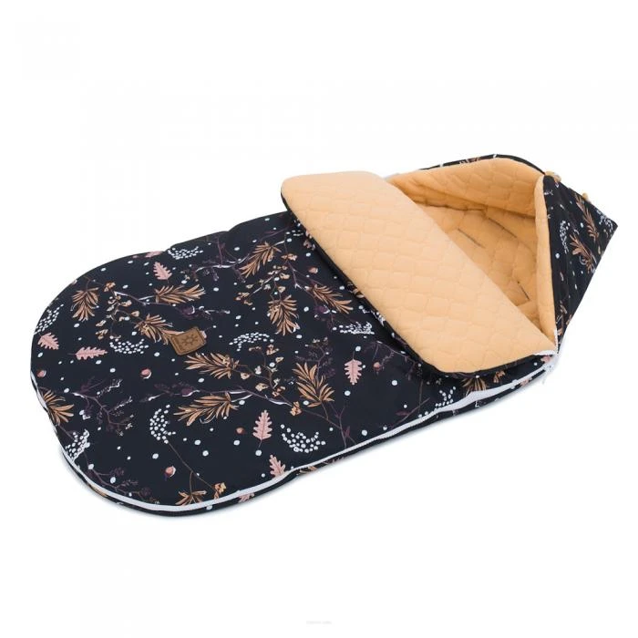 Zimní fusak Lux prošívaný flecce 48 x 90 cm Zimní kvítí černá/karamel Mamo Tato