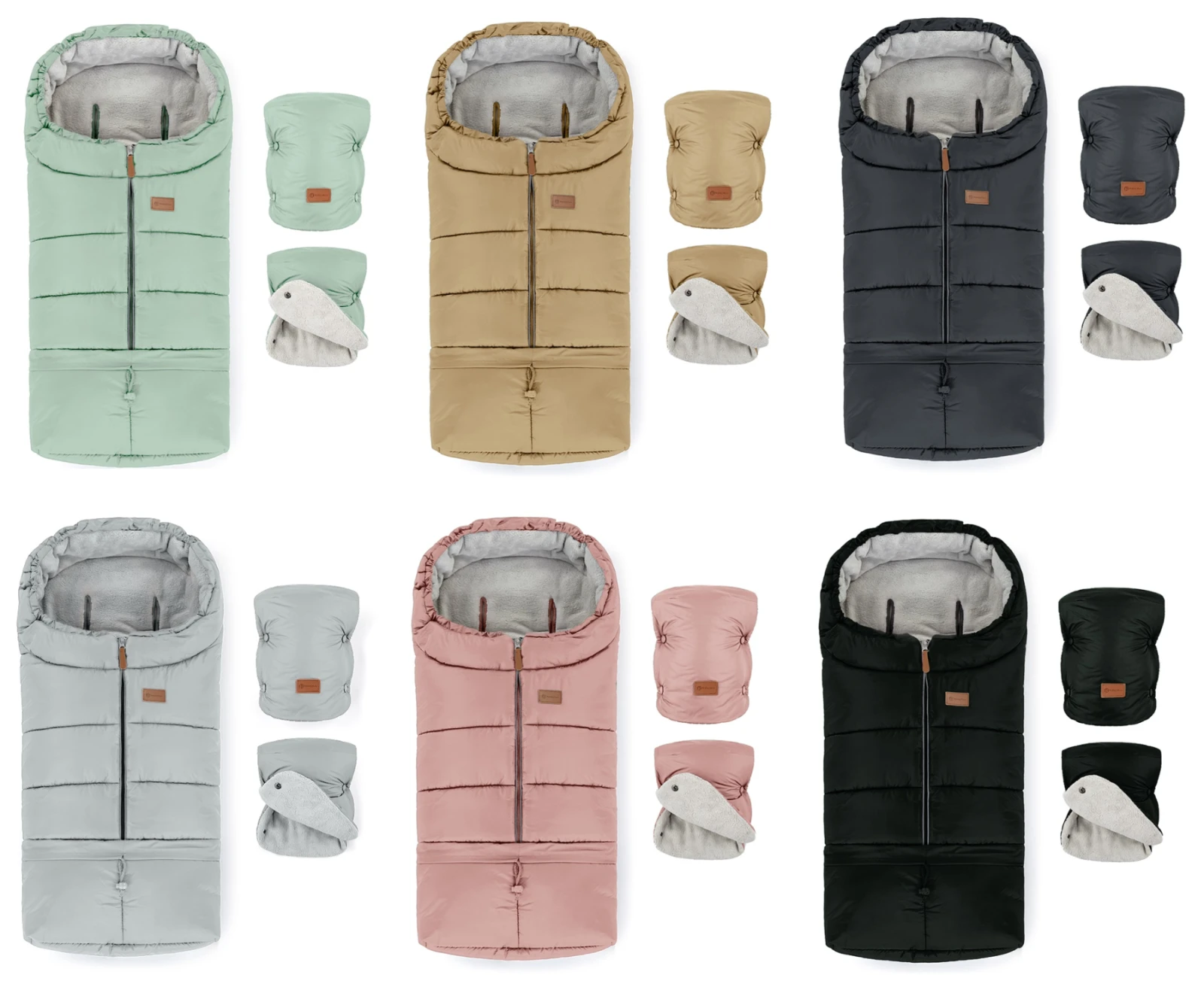 Komplet výbava na zimní kočárkování. Hřejivý prodloužitelný fusak Jibot 3v1 pro miminko a hřejivé rukavice Jasie na kočárek pro maminku. Vše krásně sladěné v jednotném odstínu.