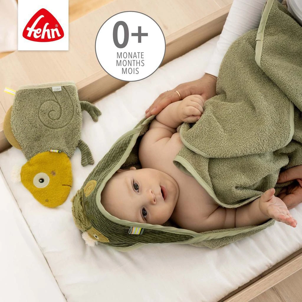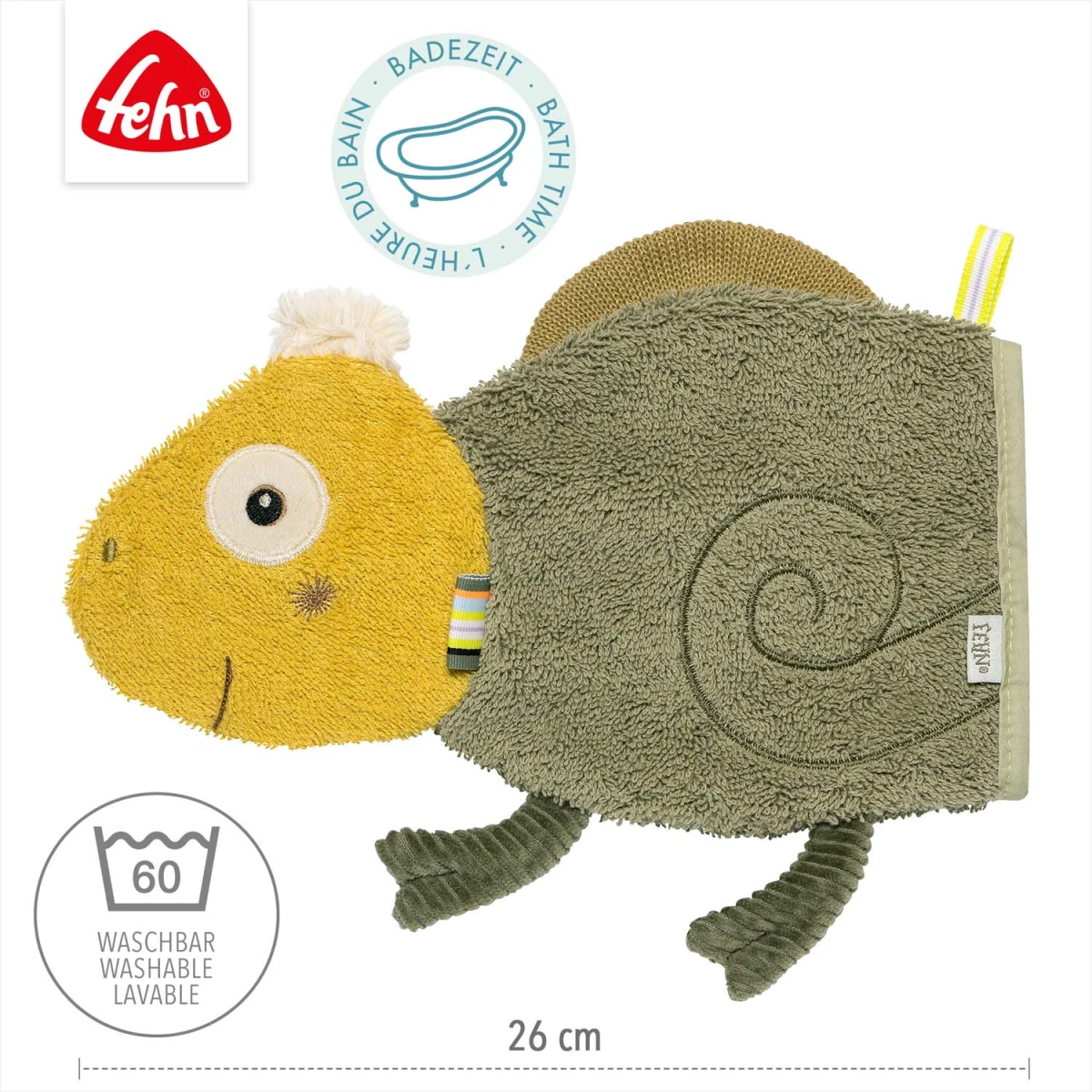 Tato roztomilá žínka s motivem zvířátka z kolekce Lazy, Crazy & Pink zaručuje maximální zábavu při koupání díky měkkému materiálu a hravým detailům. Každodenní mytí se stane potěšením pro každé miminko. Žínku lze používat nejen při koupání, ale také jako maňáska – jednoduše si ji navlékněte na ruku a chameleon rázem ožije. Hebké froté je mimořádně šetrné k dětské pokožce a čistí jemně a zábavně zároveň.