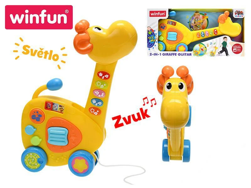 Žirafa tahací/kytara 2v1 34 cm na baterie se světlem a zvukem 18 m+