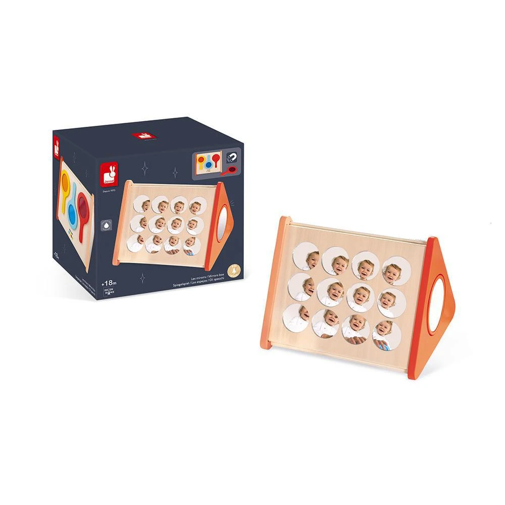 Magnetická hra se zrcadly pro nejmenší dětičky. Zrcátko je hračka pro nejmenší děti, se kterou bude pořádná zábava. Kdo to na mě dívá? Koho to vidím v zrcadle? Malé děti milují pohledy do zrcadla, kde se objevují tváře. Obličej, který se diví, usmívá i mračí. A přesně takhle je bude bavit hra se zrcátkem.