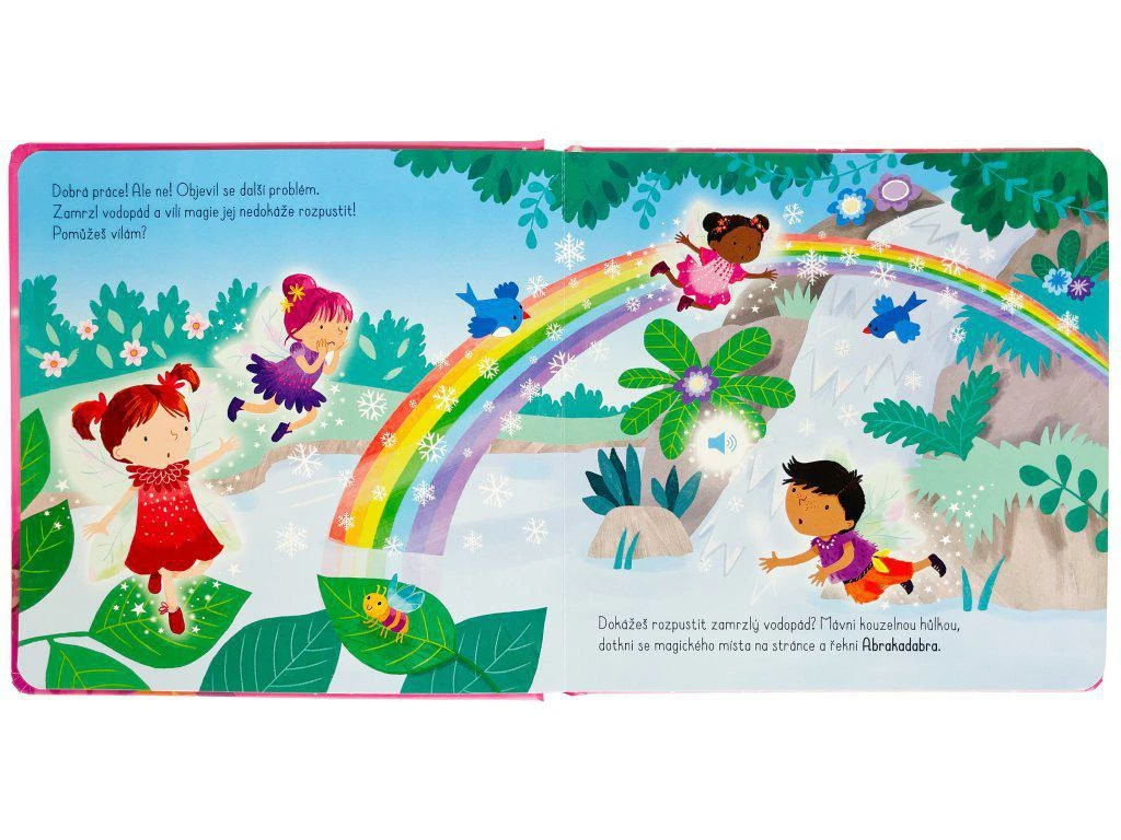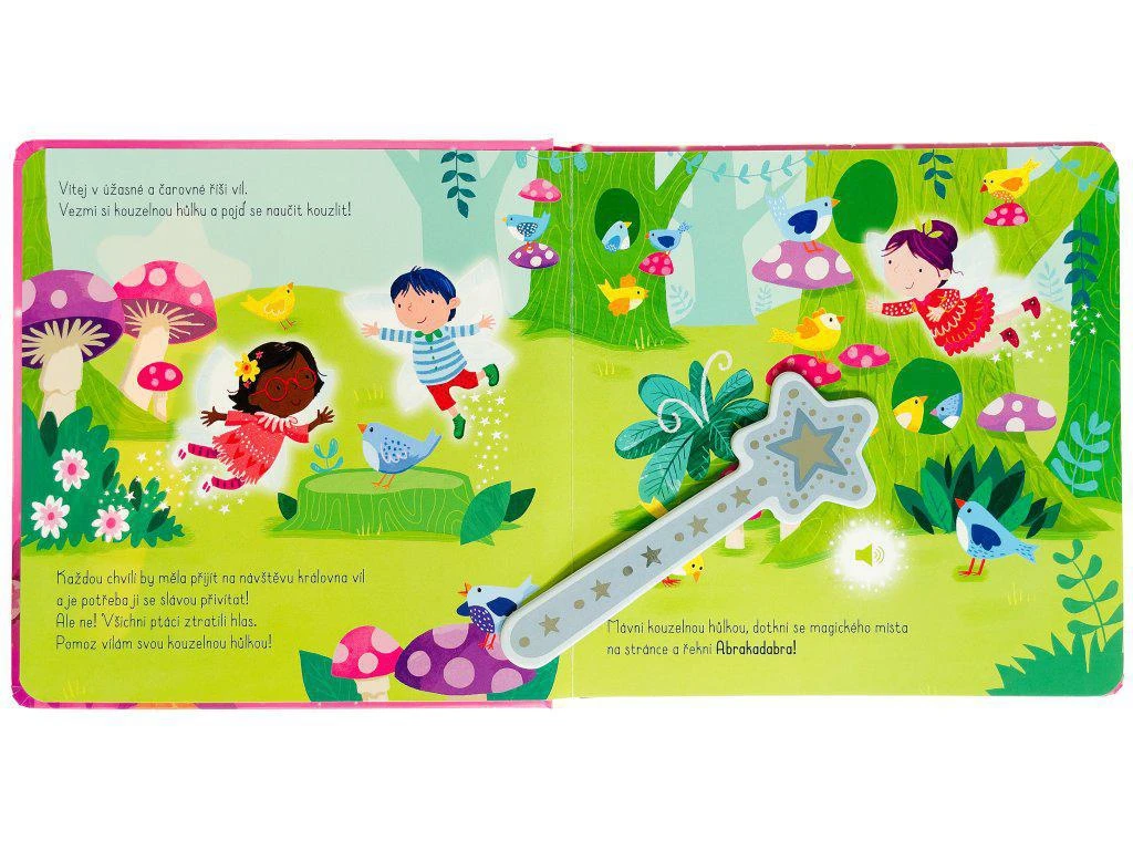 Vrhni se do kouzlení s touto interaktivní zvukovou knížkou plnou víl! Na návštěvu by měla dorazit královna víl a je potřeba ji se slávou přivítat. Ale ne! Co se stalo? Víly potřebují pomoci a jejich kouzla na to nestačí. Vezmi si kouzelnou hůlku, mávni s ní a prones kouzlo. Pomoz navrátit ptákům hlas, rozmrazit zamrzlý vodopád nebo rozehrát zakletou harfu. Ale nezapomeň, že kouzlení, jako každou dovednost, je potřeba pořádně trénovat! Tak hurá na to a kouzli pořád dokola!