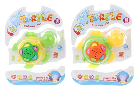 Plastová zvuková želva pro nejmenší. Po zmáčknutí tlačítek svítí a vydává zvuky. Napájení na 2 AAA baterie (jsou součátí balení).