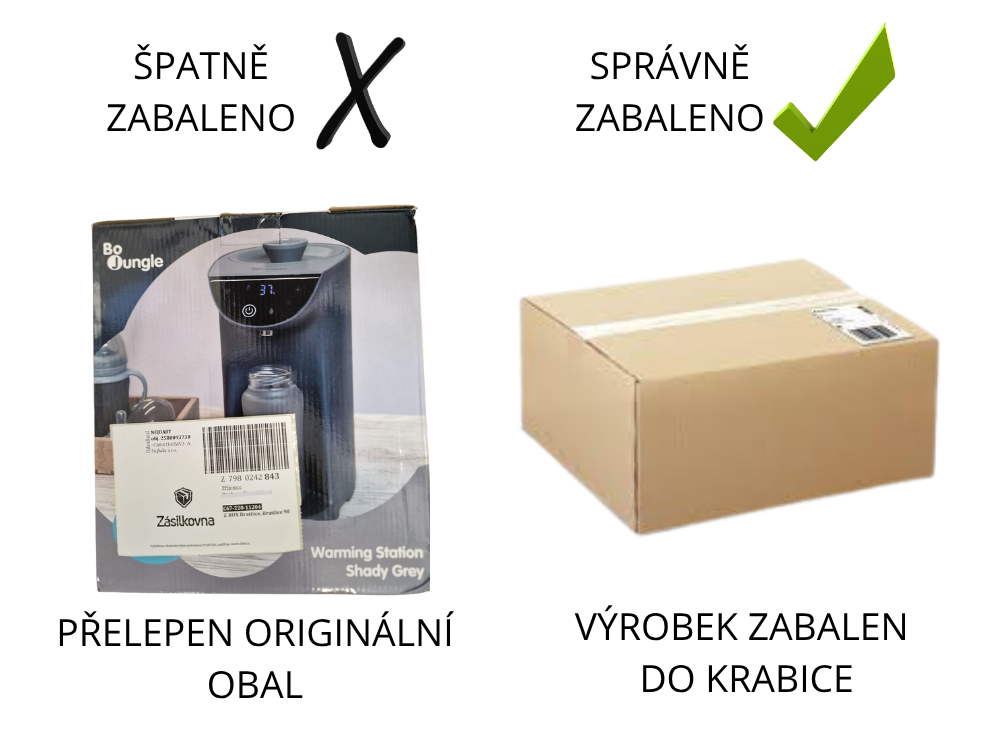 Zboží v originálním obalu je nutné vždy vložit do další krabice / obalu, aby se při dopravě nepoškodil.